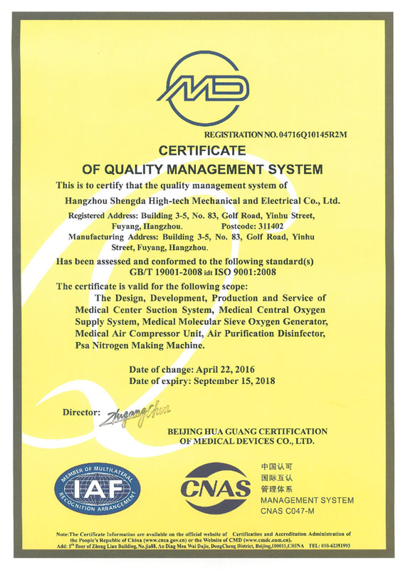 质量管理体系认证证书