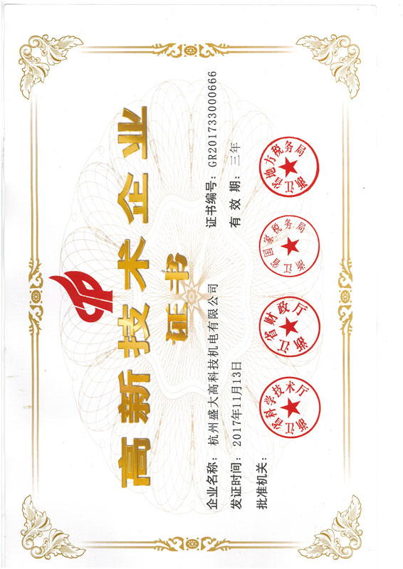 高新技术企业证书